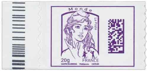 | Description | Timbre doté d’un code à barres Datamatrix d’identification sur le côté droit de l’image |