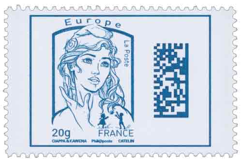 | Description | Timbre doté d’un code à barres Datamatrix d’identification sur le côté droit de l’image |
