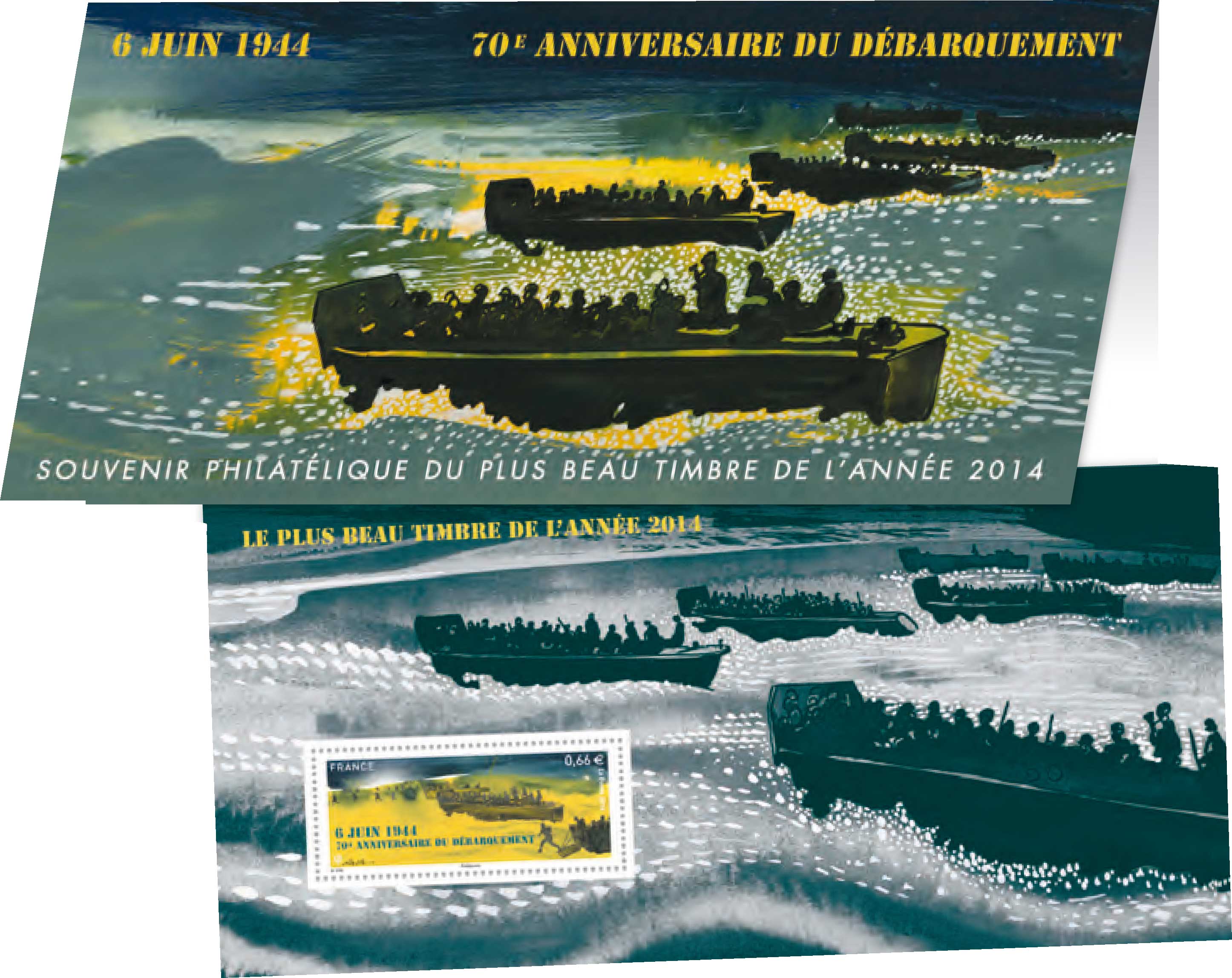 | Description | SOUVENIR PHILATELIQUE, «LE PLUS BEAU TIMBRE DE L’ANNEE 2014» : timbre 70e anniversaire du débarquement |