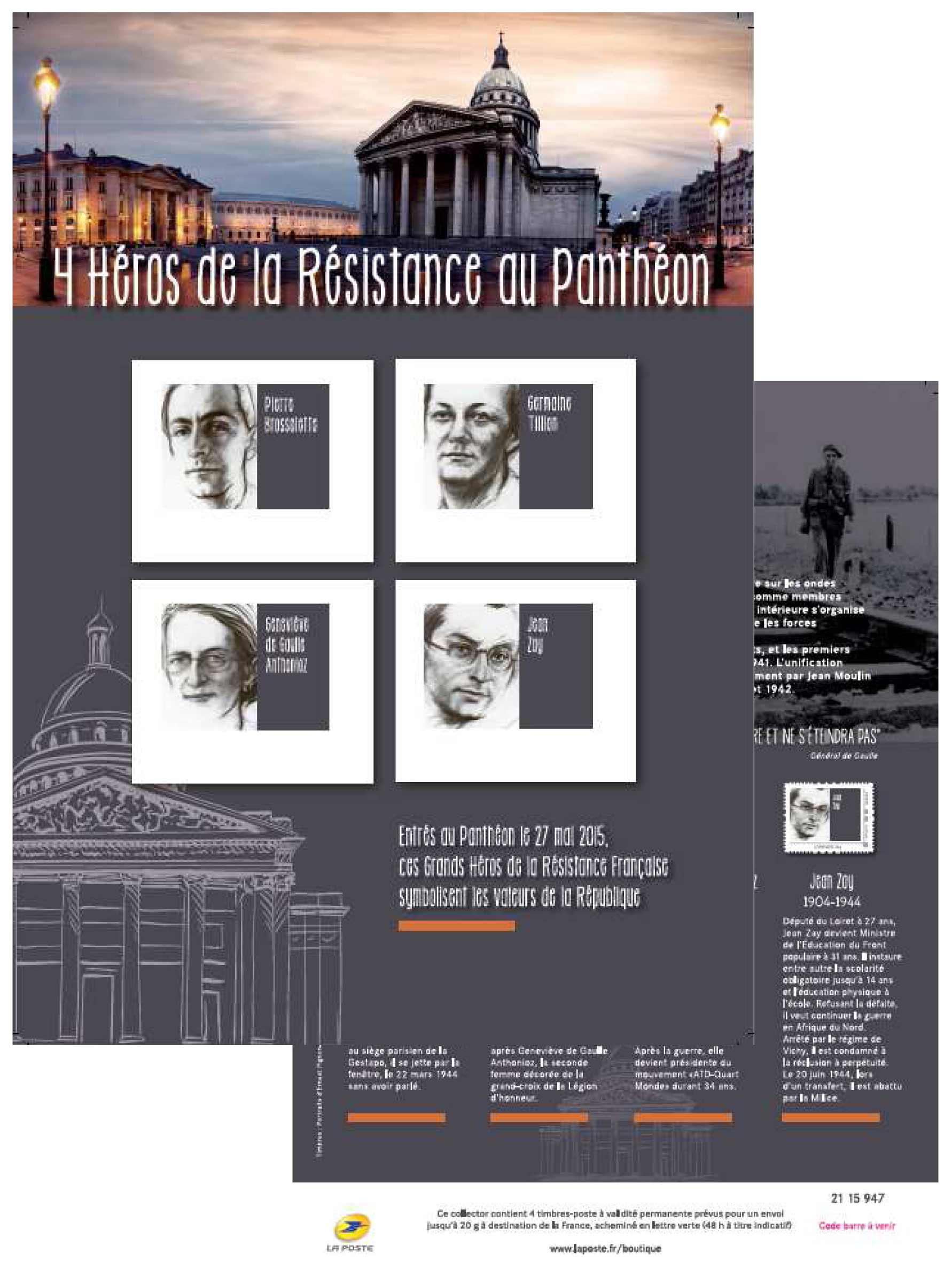 | Description | Collector "4 HÉROS DE LA RESISTANCE AU PANTHÉON" |