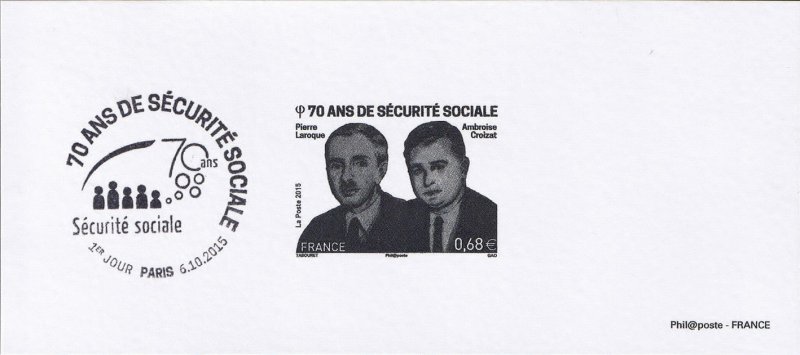 | Description | Commémoration des 70 ans de la sécurité sociale, représentation des fondateurs : Pierre Laroque (1907 - 1997), né à Paris et Ambroise Croizat (1901 - 1951), né à Notre-Dame-de-Briançon (Savoie) |
