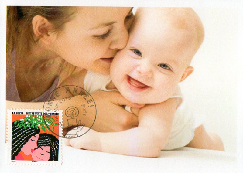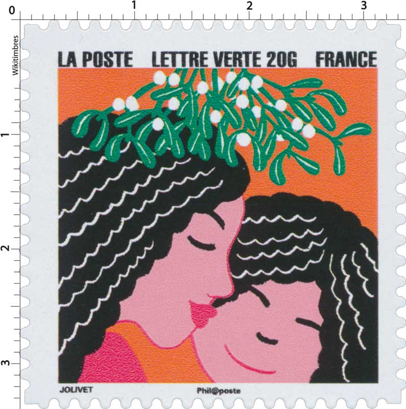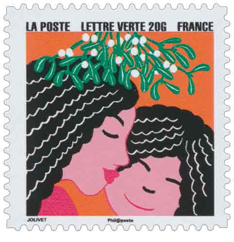 | Description | Provenant du carnet Bonne année ! enfant embrassant sa mère sous le gui |
