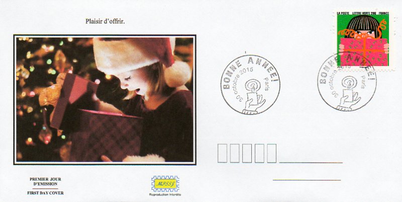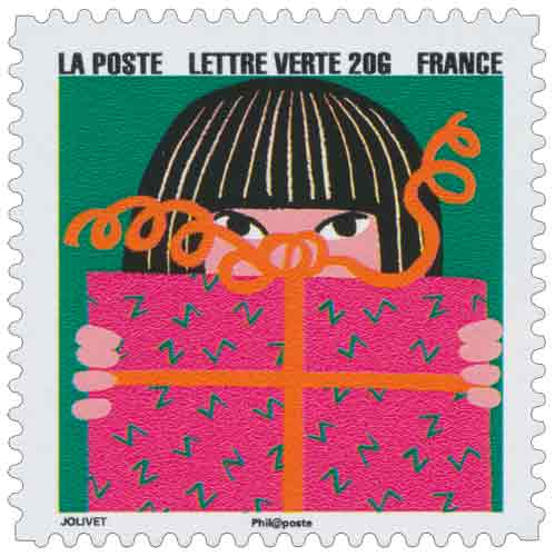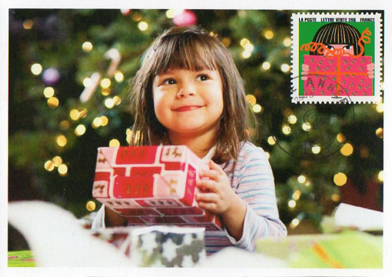| Description | Provenant du carnet Bonne année ! enfant devant un paquet cadeau |
