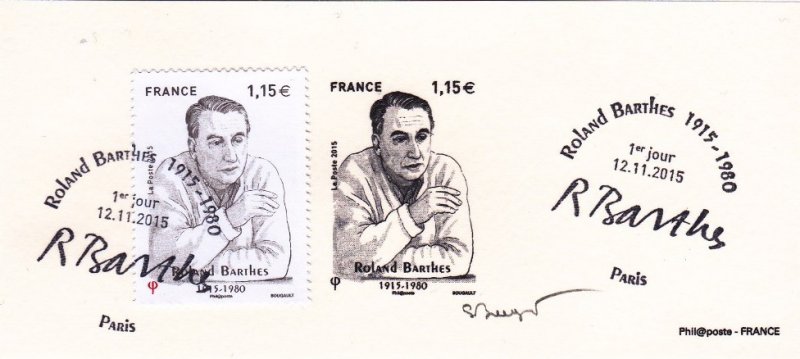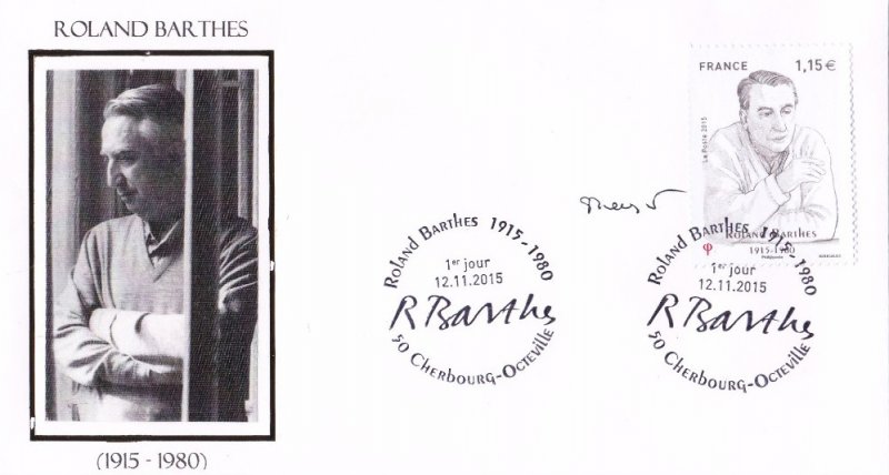 | Description | Provenant du bloc: centenaire de la naissance de Roland Barthes (1915-1980), critique littéraire né à Cherbourg |