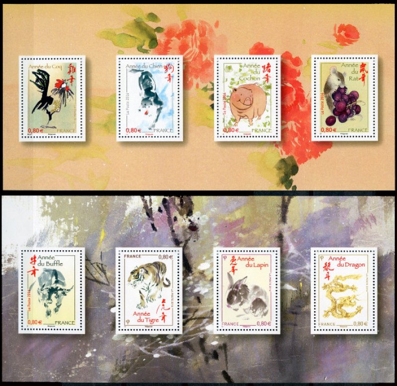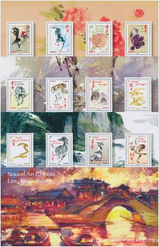 | Description | Pochette des souvenirs philatéliques, contenant les timbres des 12 signes astrologiques chinois |
