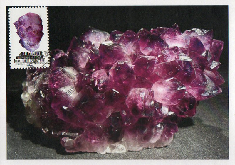 | Commentaire | En savoir plus sur Wikipédia : Minéralogie En savoir plus sur Wikipédia : Améthyste En savoir plus sur Vivalatina : Améthyste et joaillerie L'améthyste est une variété de quartz violet (dioxyde de silicium), diaphane à translucide dont la teinte est due aux traces de fer. Ce minéral est utilisé en joaillerie et classé comme pierre fine. Connue et appréciée depuis l'antiquité, l'Améthyste est une variété monocristalline de Quartz dont la couleur est toujours violet à mauve. Sa disponibilité, sa bonne dureté et son absence de clivage la rendent facile à tailler et à polir, ce qui a largement contribué à son succès bien mérité en bijouterie, joaillerie et orfèvrerie. Les gisements les plus productifs se situent en Amérique du Sud (Brésil, Uruguay) et en Afrique (Zambie). Il est à signaler qu'il existe sur le marché mondial un nombre grandissant d'Améthystes synthétiques taillées à facettes, souvent proposées pour des Améthystes naturelles.