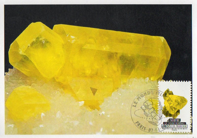 | Commentaire | En savoir plus sur Wikipédia : Minéralogie En savoir plus sur Wikipédia : Soufre Formation par sublimation autour des fumerolles d'origine volcanique. Cristaux bipyramidaux, tabulaires épais, souvent bien formés, toujours jaunes. Minéral tendre, fragile et sensible à la chaleur. Pour ces trois raisons, les gemmes taillées à facettes sont très rares car elles nécessitent une grande compétence de la part du lapidaire. L'essentiel du soufre exploité est cependant d'origine sédimentaire. C'est un élément essentiel pour tous les êtres vivants ; il intervient dans la formule de deux acides aminés naturels, la cystéine et la méthionine et, par conséquent, dans de nombreuses protéines. Le soufre sert à 90 % à préparer l'acide sulfurique, produit de base de l'industrie chimique. Il est notamment employé comme engrais (sulfates) (60 la production) et phytosanitaire fongicide (contre l'oïdium de la vigne). |