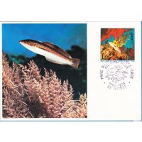 | Commentaire | Visuel : la girelle évolue en groupe sur fonds rocheux (dans les herbiers de posidonies) - se nourrie de crustacés et de mollusques – s'enfonce dans le sable la nuit et en hiver. La gorgone colorée (Cnidaire Anthozoaire, ou plante-animal – la ressemblance avec la chevelure de serpents du monstre mythologique), au squelette rappelant celui des coraux. La gorgone rouge, espèce emblématique de la Méditerranée, est un animal fragile, qui est une colonie de polypes. Elle ne croit que de 1 à 3 cm par an. Ses bouquets, hauts de 30 à 60 cm, se fixent sur les tombants. Ce joyau sous-marin, est un indicateur du bon état de conservation de son milieu aquatique méditerranéen. |