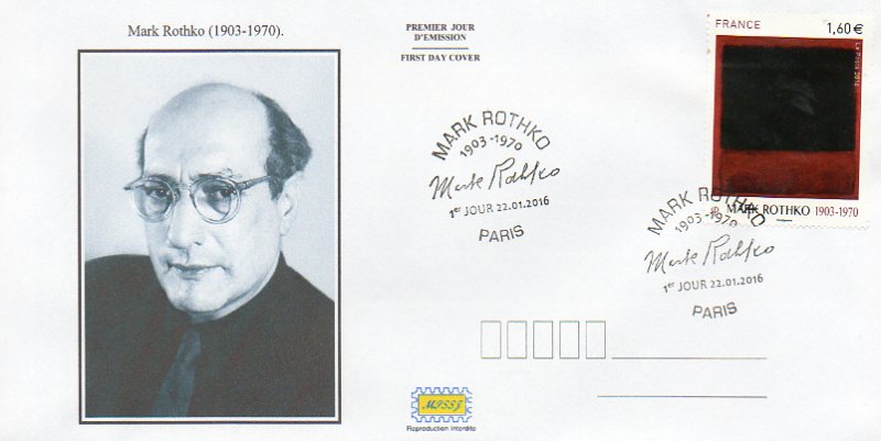 Mark Rothko, né Markus Yakovlevich Rotkovich (en russe) à Dvinsk dans l'Empire Russe, aujourd'hui Daugavpils en Lettonie, le 25 septembre 1903. En 1913, il émigre avec sa mère et sa soeur à Portland (Oregon - Etats-Unis) pour y rejoindre son père et ses deux frères déjà installés. Il obtient la nationalité américaine le 21 fév.1938 et va résider dans le pays jusqu'à sont décès (suicide) le 25 fév.1970 à New-York, suite à sa maladie handicapante, l'empêchant de poursuivre sa passion. Peintre, classé parmi les représentants de "l'expressionnisme abstrait américain", il refusait cette catégorisation jugée trop aliénante et se tourna vers le surréalisme.