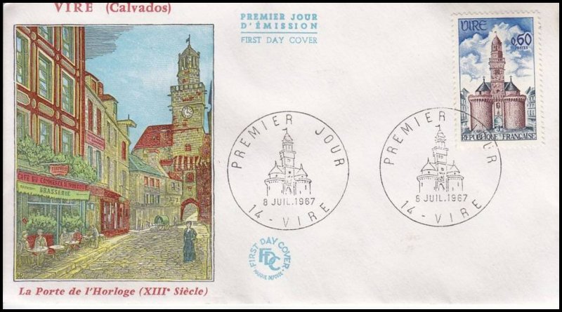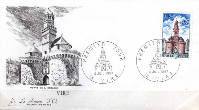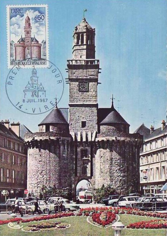 | Commentaire | Tu connais Vire ? Non ? Eh bien, imagine un coin de Normandie qui a pris des baffes de l’histoire, mais qui s’est toujours relevé, digne et solide. Et au milieu de tout ça, un monument qui sonne un peu comme un clin d’œil obstiné au passé : la Porte-Horloge. Pas juste une vieille pierre avec une cloche, hein — non, un vrai beffroi, rare en Normandie, perché au-dessus d’un ancien passage fortifié. Du genre à t’arrêter net quand tu lèves la tête. Son histoire, c’est un peu un résumé express de Vire : au début, une place forte, puis une ville convoitée, prise et reprise par Anglais et Français, pilonnée pendant la guerre… et toujours là. La Porte-Horloge, elle, a d’abord servi à surveiller les entrées de la ville au XIIIe siècle, puis les bourgeois du coin y ont greffé une tour en 1483, histoire de fêter le retour à la paix et à la prospérité. Un geste de fierté locale, quoi. Et il paraît que Louis XI lui-même a fait poser l’horloge… anecdote ou vérité ? Mystère, mais ça pimente le truc. Et aujourd’hui, Vire ne vit pas que dans ses vieilles pierres. Entre deux spécialités (la fameuse andouille, miam), on tombe sur une église reconstruite avec finesse, des vestiges mis en lumière, un vrai patrimoine choyé. Et puis cette ambiance, entre bocage verdoyant et forêts aux allures de contes. Un lieu qui mêle racines profondes et modernité tranquille. En gros, Vire, c’est une ville qui ne fait pas de bruit… mais qui, derrière ses pierres, a une sacrée voix. Une ville qui, même dans les ruines, t’explique qu’elle n’a jamais baissé les bras. WikiTimbres |