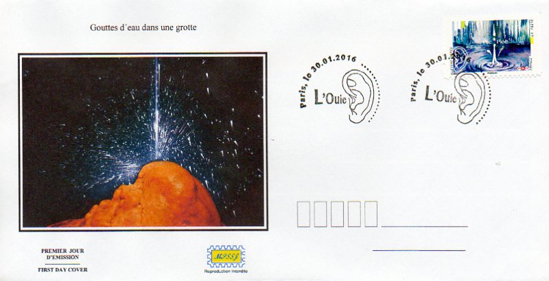 | Commentaire | Le bruit des gouttes d'eau dans une grotte : en spéléologie, une cavité souterraine naturelle active est nommée "grotte". C'est un milieu souvent très humide, durant les explorations souterraines, l'on entend ça et là le bruit que font les gouttes d'eau en tombant sur le sol ou sur la surface des retenues d'eaux. Ces gouttelettes proviennent des stalactites du plafond qui sont formés par l'eau qui suinte du plafond et qui a mis plusieurs jours à traverser la roche en se chargeant de calcaire dissous qu'elle dépose goutte à goutte pour former la stalactite (dépôt minéral appelé calcite, 1 siècle environ pour cristalliser dans l'air 1 cm de sels calcaires). Au sol, se forment, hors de l'eau, les stalagmites qui montent à la rencontre des stalactites, pour former des colonnes. |