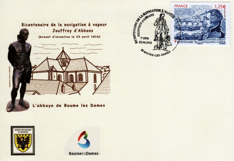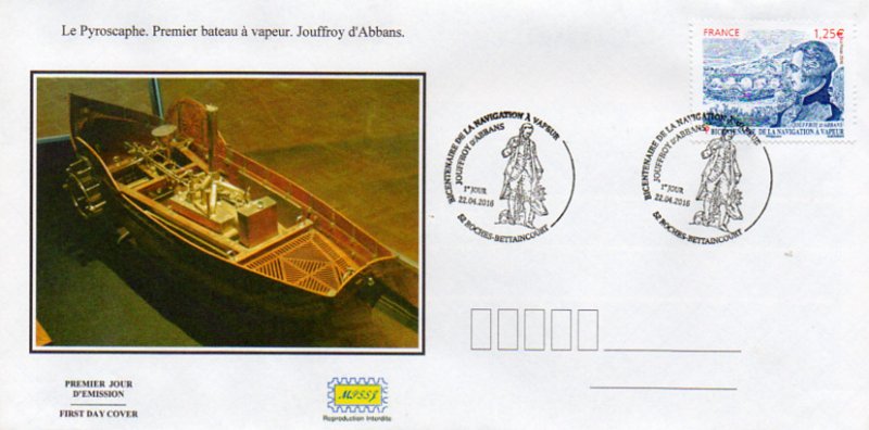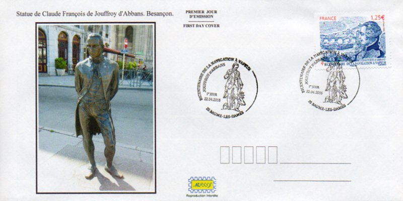 | Description | Commémoration du bicentenaire de la navigation à vapeur et de son inventeur, Jouffroy d’Abbans (1751- 1832) architecte naval et ingénieur , né en Champagne |