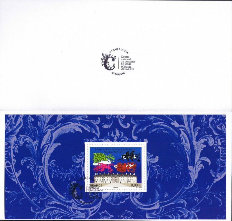| Description | Souvenir philatélique : centre national du costume de scène Moulins |
