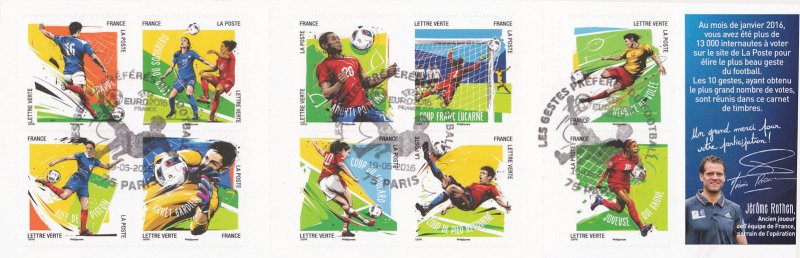 | Commentaire | Le vote de 13 000 internautes a déterminé le choix des 10 gestes préférés représentés dans ce carnet Frappe, coup du sombrero, amorti poitrine, coup franc lucarne, reprise de volée, aile de pigeon, arrêt gardien, coup du foulard, coup de pied retourné, joueuse qui gagne |