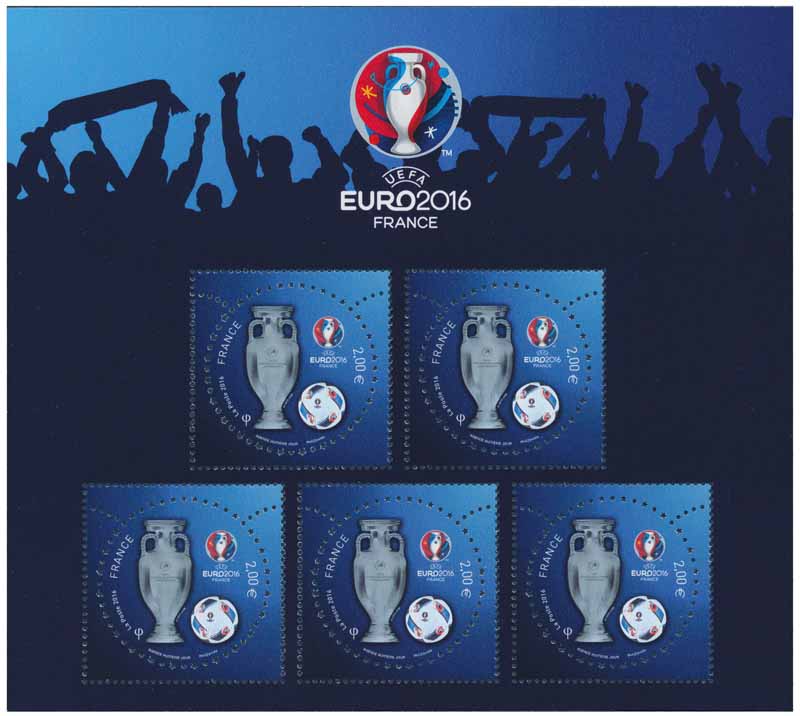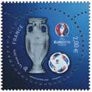| Description | Réédition du bloc UEFA Euro en 3 D, valeur des Timbres à 2 € + un vernis relief est appliqué uniquement sur la coupe |