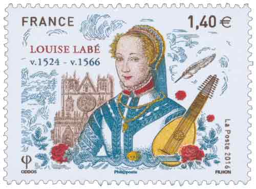 | Commentaire | Timbre à date “Premier Jour” conçu par Eloïse Oddos En savoir plus sur Wikipédia : Louise Labé Louïze Labé (ou Loise Labbé, Lionnoise) est native de Lyon, entre 1524 et 1525. Elle décède en fév. 1566, dans la propriété "Grange-Blanche" qu'elle a achetée et occupée à la fin de sa vie, durant l'occupation protestante de Lyon, à Parcieux-en-Dombes (01-Ain) où elle est inhumée. Fille d'un riche marchand de cordes, propriétaire foncier, elle reçoit une éducation raffinée : elle apprend le latin, le grec, l'italien, la musique (luth), et est instruite au maniement des armes. Elle s'habille parfois en garçon, pratique l'équitation et fait des tournois. Il y a beaucoup de spéculations sur sa vie : a-t-elle participé au siège de Perpignan ? A-t-elle été une maîtresse, une courtisane, comme l'en accuse Calvin dans un pamphlet de 1560 ? Vers 1543, on la marie à Monsieur Perrin, un maître cordier plus âgé qu'elle. De là, lui vient le surnom de "La Belle Cordière". A Lyon, son salon est le lieu de rendez-vous de "l'école lyonnaise", appréciée des poètes qui lui dédièrent de nombreux vers et qui chantèrent sa beauté. En 1555 par privilège accordé par le Roi Henri II (règne 1547-1559), elle publie ses écrits dans un unique volume intitulé "Œuvres" (Evvres de louize Labé, lionnoise). Elle a réalisé un testament, dont la précision ne laisse guère de doutes, sur la période de sa vie. Visuel : "Loise Labbé, Lionnoise", par le lorrain Pierre Woeiriot, tiré d'une estampe de 1555 : l'ornementation du portrait, avec une petite figure grotesque (bas, milieu) Figure d'un personnage mythique, que l'on retrouve dans certaines gravures de l'artiste, souvent accompagnés de "motifs allégoriques" tiré d'écrits grecques anciens. |