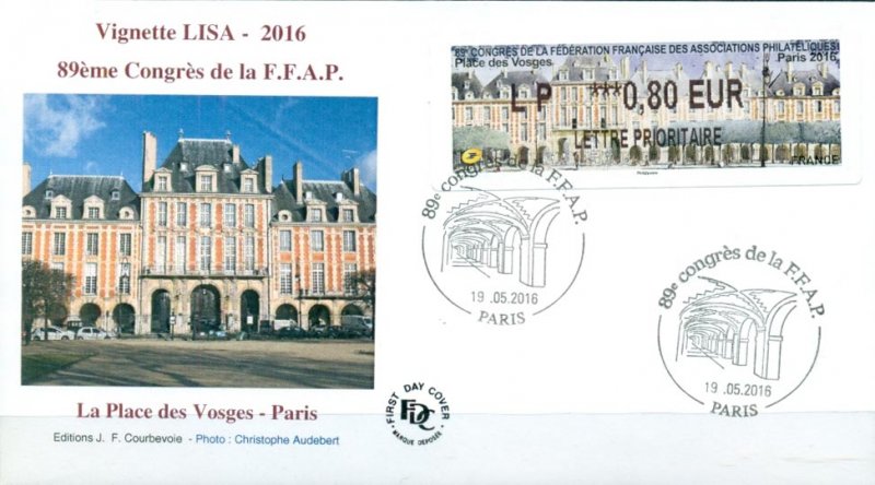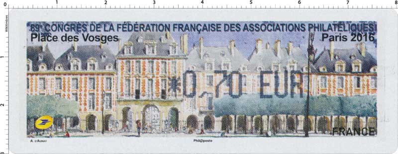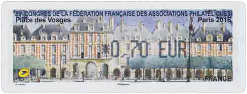 | Description | Vignette LISA émise à l’occasion du 89e congrès de la FFAP , avec pour thème la Place des Vosges |