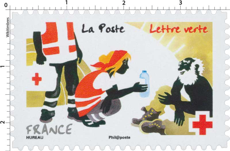 Carnet de 8 timbres-poste autocollants à 7,60 €, dont 2,00 € de don pour la Croix-Rouge française