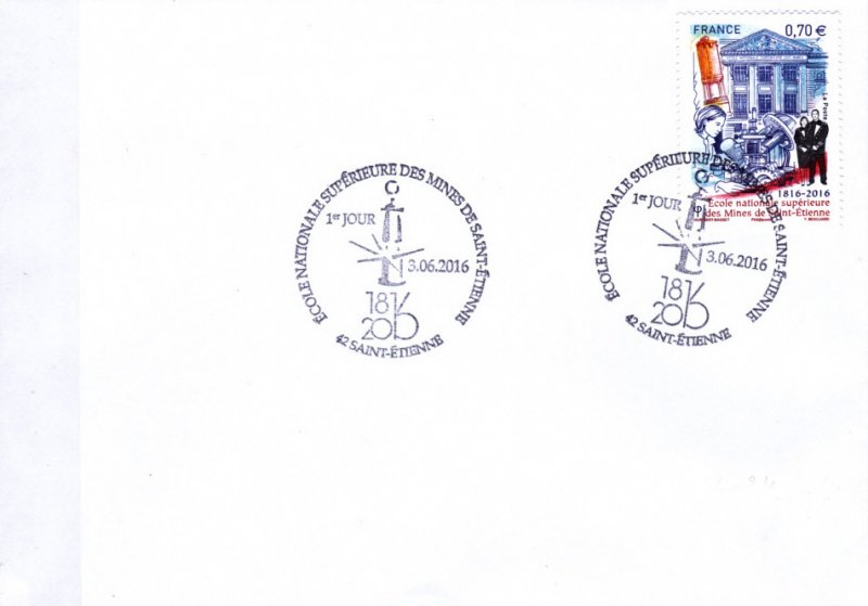 | Description | Timbre commémoratif à l’occasion des 200 ans de l’École nationale supérieure des Mines de Saint-Étienne |