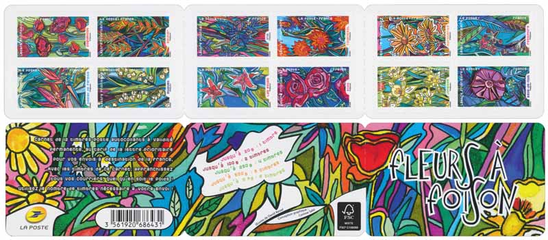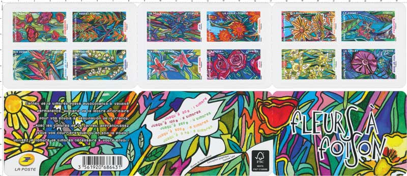 | Description | Carnet de 12 timbres autoadhésifs sur le thème des fleurs |