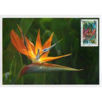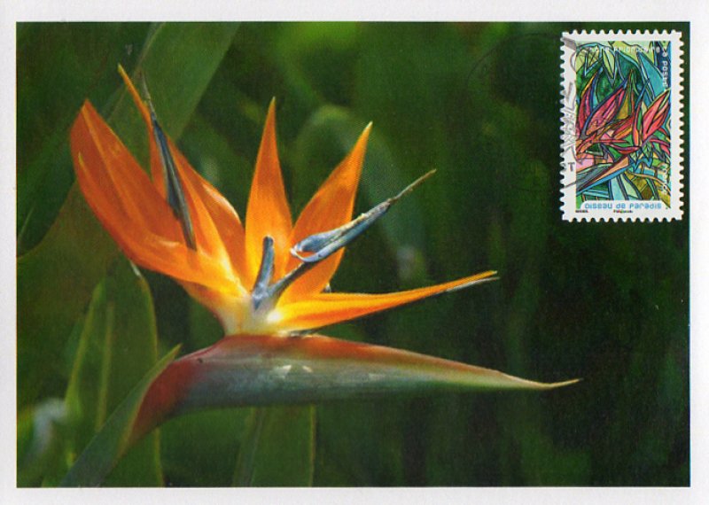 Oiseau de paradis : la Strelitzia, notamment la Strelitzia reginae (nom, honorant le reine Charlotte d'Angleterre, 1744-1818). Originaire d'Afrique du Sud, elle est une espèce de plante ornementale de la famille des Strelitziacées (7 espèces appartenant à 3 genres). Son nom provient de la forme curieuse de ses fleurs qui ressemble à une tête d'oiseau. Il est très courant dans les massifs publics dans les régions au climat doux ou dans les jardins tropicaux et subtropicaux. C'est le plus connu des oiseaux de paradis car on le trouve facilement chez les fleuristes.
