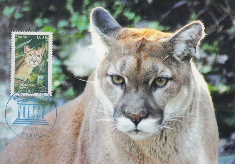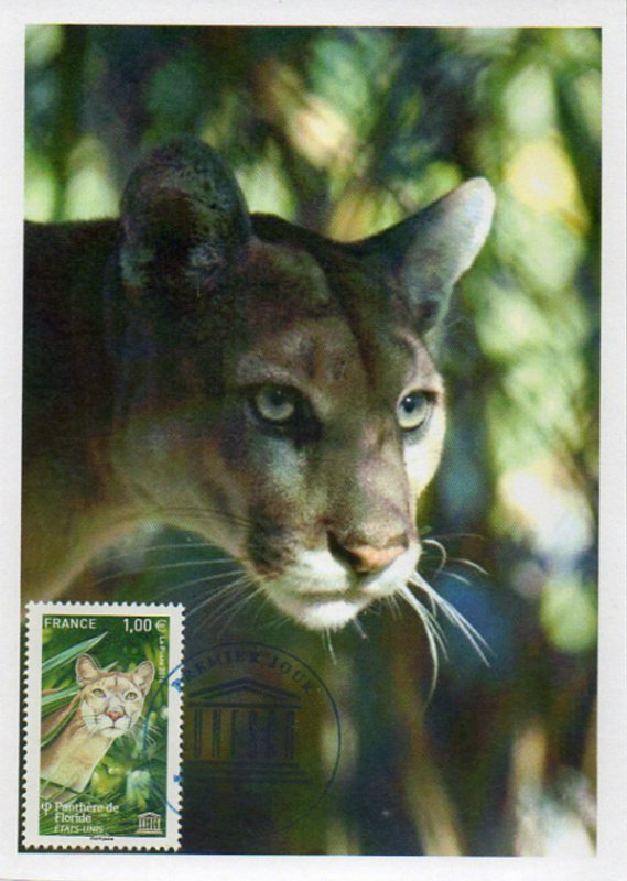 | Commentaire | En savoir plus sur Wikipédia : Panthère de Floride Autrefois présente dans tout le Sud-Est des États-Unis, elle survit dans le Sud de la Floride (dans les marais de Big Cypress). La panthère de Floride (Puma concolor cougouar ou Puma concolor coryi) est protégée de la chasse légale depuis 1958, et a été classée en 1967 comme espèce menacée par l'United States Fish and Wildlife Service, elle a été ajoutée à la liste des espèces menacées de l'État de Floride en 1973. Il ne subsiste qu'une centaine d'individus en liberté. Morphologie : c'est un carnivore - Il se nourrit de lièvres, d'écureuils ou d'oies, mais aussi de proies plus grosses, comme les cerfs de Virginie, les tantales ou encore les sangliers sauvages - sa taille : 1,80 m à 2,40 m de long avec la queue, pour le mâle (la femelle est un peu plus petite - poids : 60 kg pour le mâle et 40 kg pour la femelle (moyennes) sa longévité dans la nature est de 8 à 15 ans, mais jusqu'à 20 ans, protégée en captivité. |