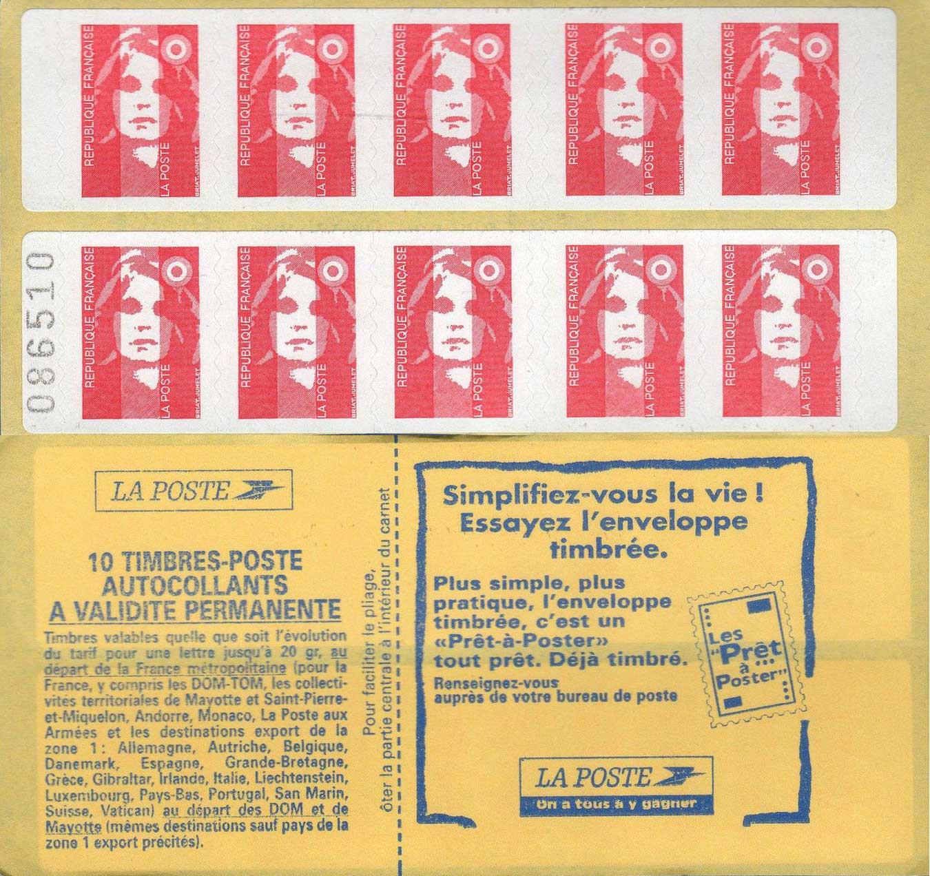 | Commentaire | Carnet à plat pour distributeur Sagem En savoir plus sur Wikipédia : Marianne du Bicentenaire |