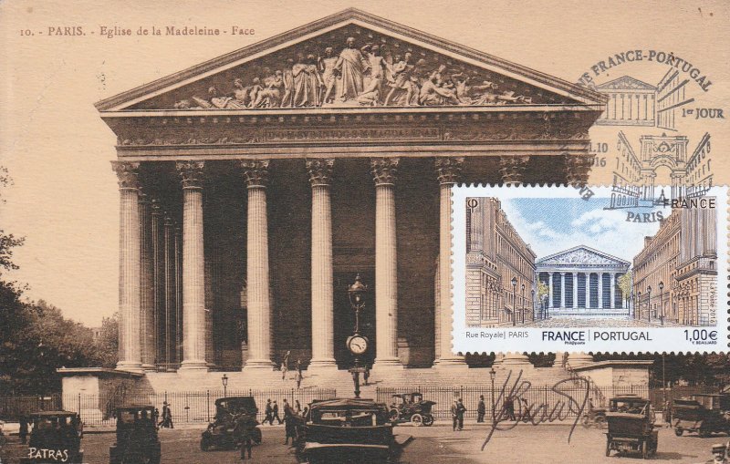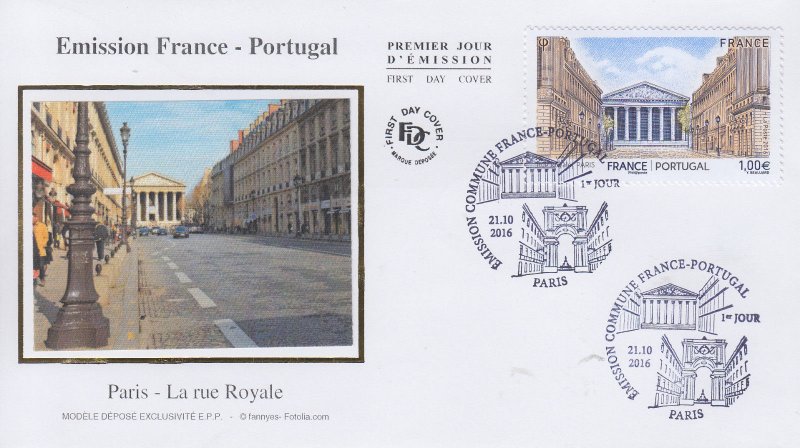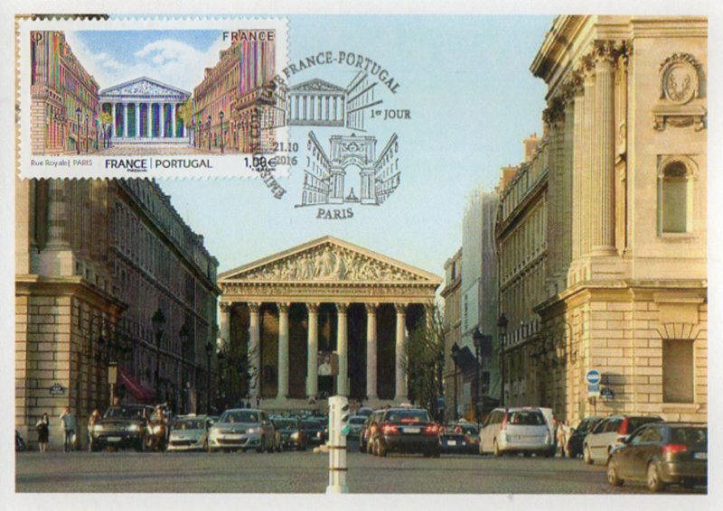 | Commentaire | En savoir plus sur Wikipédia : Rue Royale la "Rue Royale" à Paris, fut conçue par l'architecte du Roi, Ange-Jacques Gabriel et construite entre 1758 et 1785 à l'endroit où s'élevaient jusqu'en 1733 la porte Saint-Honoré et les anciennes fortifications de la cité - La perspective de cette rue, longue de 282 m, met en valeur la façade monumentale de l'église de la Madeleine. De part et d'autre, les immeubles haussmanniens, éclaire élégamment la rue, par la couleur des blocs de pierre appareillés, en provenance de nombreuses carrières situées parfois loin de la capitale. L'extrémité Sud de la rue, avec ses deux hôtels à colonnades, offre une très belle perspective sur la place de la Concorde, l'obélisque et l'Assemblée nationale. |