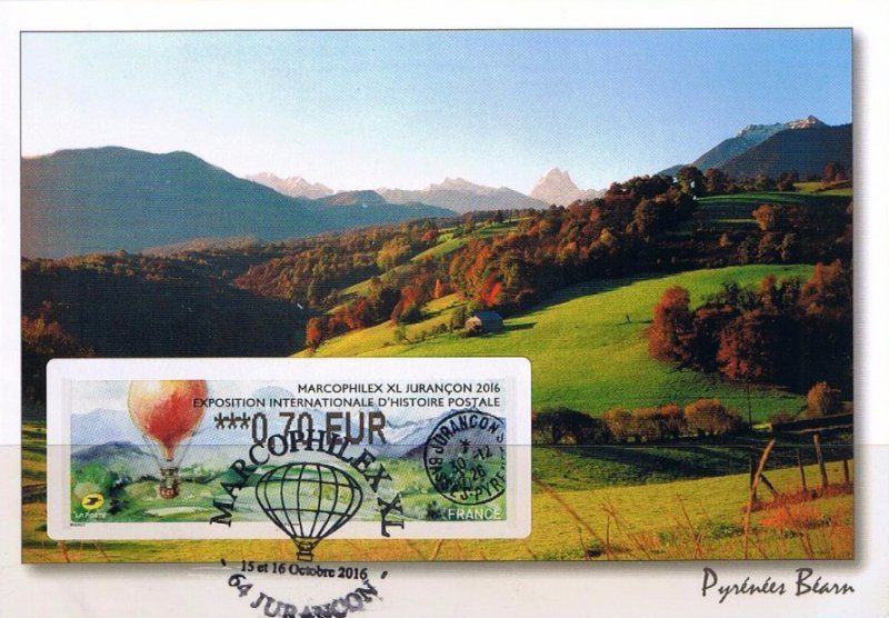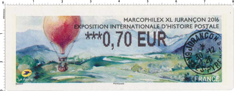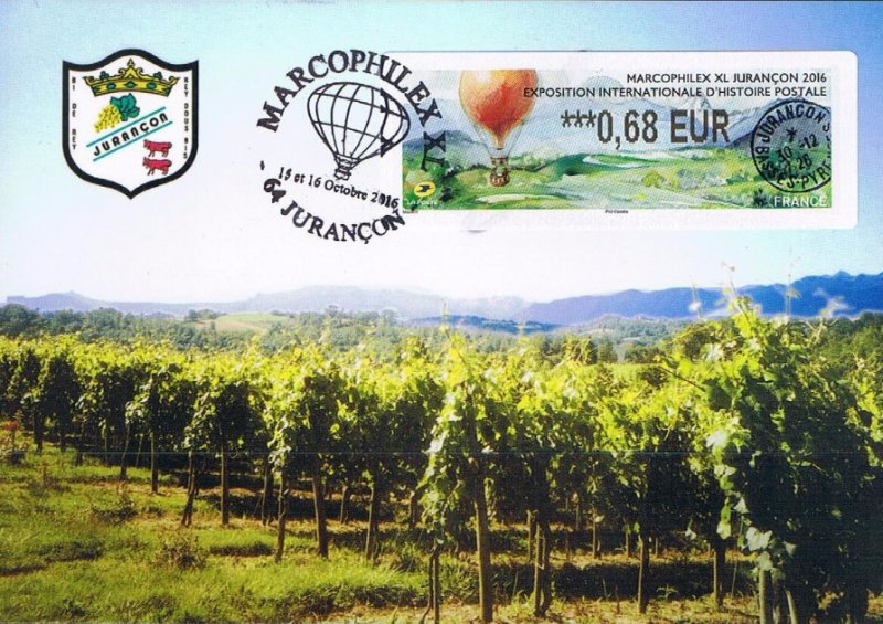 | Commentaire | En savoir plus sur Wikipédia : Jurançon L'Union Marcophile, est une association internationale pour l'étude de l'histoire postale, des marques et des oblitérations, fondée le 15 janv. 1927 à Annecy. Elle édite une revue trimestrielle de marcophilie et d'histoire postale intitulée "Les Feuilles Marcophiles". Elle était fédérée jusqu'en février 2010 à la FFAP et faisait partie du Groupement des associations philatéliques spécialisées (GAPS). Chaque année à l'occasion de son Assemblée Générale, une exposition non compétitive "Marcophilex" est organisée dans une ville différente. Cette manifestation a été mise en place en 1958 et depuis l'année 2012, une vignette postale d’affranchissement LISA est dédiée à cet événement. En 2015, pour sa 39e exposition, Marcophilex s'est déroulée à Auvers-sur-Oise (95-Val d’Oise) les 17 et 18 oct. (voir journal d'oct. 2015) – cette année, la ville choisie est Jurançon (64-Pyrénées –Atlantiques). |