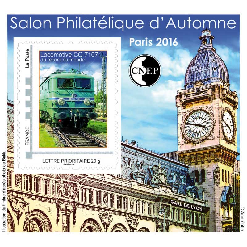 | Commentaire | C'est le quatrième bloc de la série sur les gares parisiennes représente la gare de Lyon illustré par Claude Andréotto En savoir plus sur Wikipédia : gare de Lyon En savoir plus sur Wikipédia : CC 7100 existe également "Non dentelé" Paris-Gare-de-Lyon est l'une des sept gares terminus du réseau de la SNCF à Paris. Troisième gare de Paris par son trafic et deuxième pour le réseau des Grandes Lignes. La première gare de Lyon est ouverte officiellement au public le 12 août 1849, sous le nom d'Embarcadère de chemin de fer de Paris à Montereau. Conçu par l’architecte François-Alexis Cendrier (1803-1893), c'est un bâtiment en bois. En 1855, le même architecte réalise une nouvelle gare, sur une levée de terre de 6 m à 8 m destinée à la protéger des crues de la Seine. En 1857, est fondée la Compagnie des chemins de fer de Paris à Lyon et à la Méditerranée, la PLM. Durant la Commune de Paris en 1871, la gare fut détruite par un incendie, comme l’Hôtel de Ville. Elle sera reconstruite à l’identique. La gare est agrandie (1895 à 1902) pour l’Exposition de 1900, elle bénéficie désormais de 13 voies pour absorber le nombre de visiteurs. Deux autres gares sont construites pour la même exposition, la Gare d’Orsay, aujourd’hui un célèbre musée, et la Gare des Invalides. Les meilleurs artistes de la Belle Epoque furent appelés pour embellir la Gare avec leurs sculptures, sous la direction de l’architecte toulonnais Marius Toudoire (1852-1922). La nouvelle Gare est belle et fonctionnelle, elle ne fut modifiée que dans les années 1960.