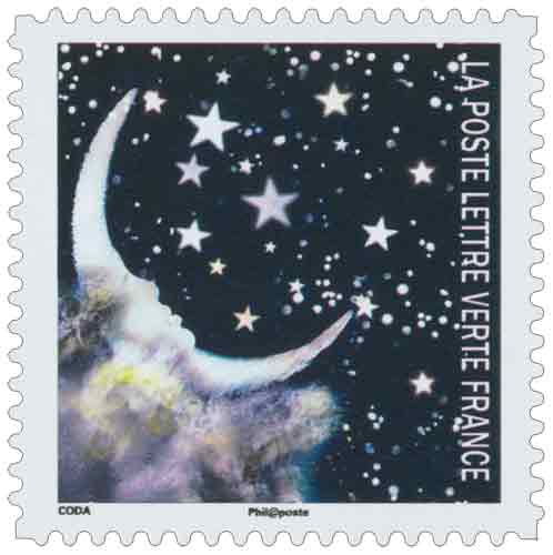 | Description | Provenant du carnet de 12 timbres-poste autocollants illustrés par Guy Coda représentant le Cosmos |