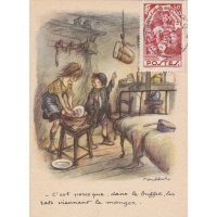 Émis dans un contexte économique encore marqué par les effets de la crise mondiale, ce timbre caritatif de 1936 s’inscrit dans la série d’émissions de solidarité destinées à soutenir les familles touchées par le chômage. René Grégoire signe une composition symbolique particulièrement expressive : une mère protectrice tenant son enfant, représentés en taille-douce avec une sensibilité humaniste typique des œuvres sociales de l’entre-deux-guerres. |