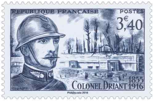 | Description | Réédition du timbre : "COLONEL DRIANT 1855-1916" |