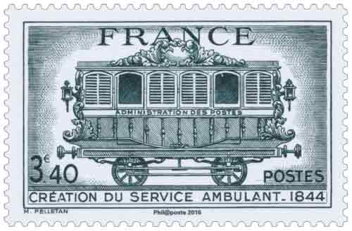 | Description | Réédition du timbre : "CRÉATION DU SERVICE AMBULANT 1844" |