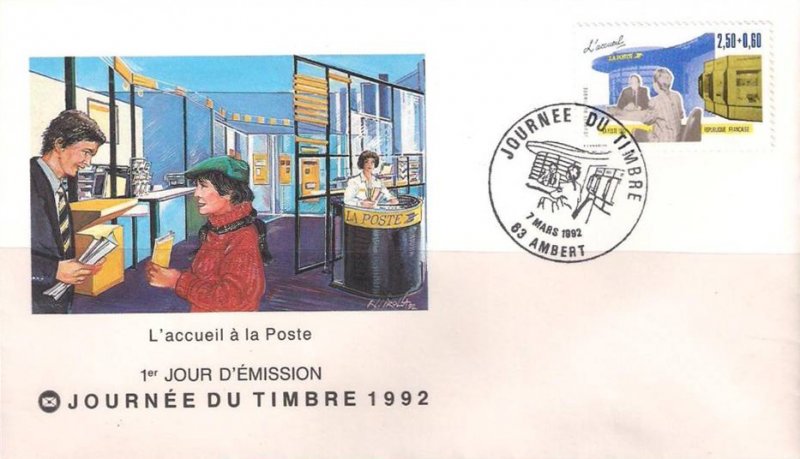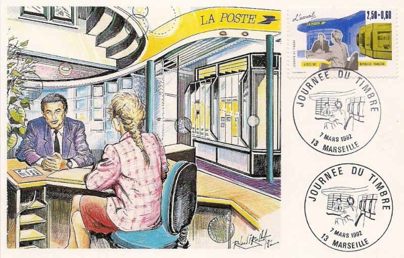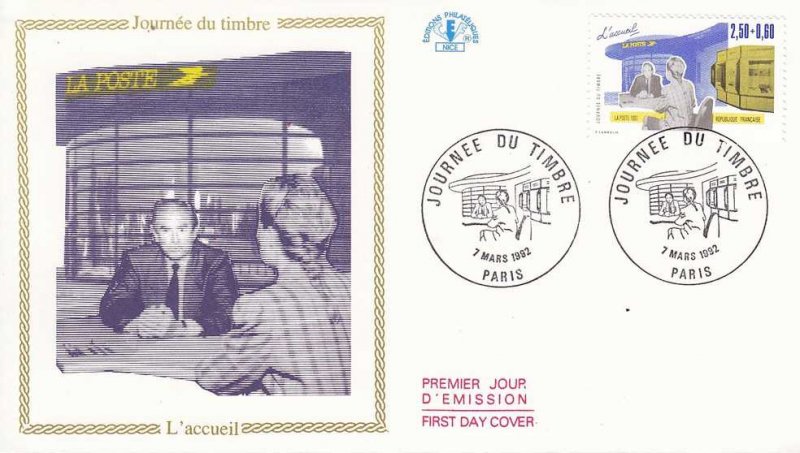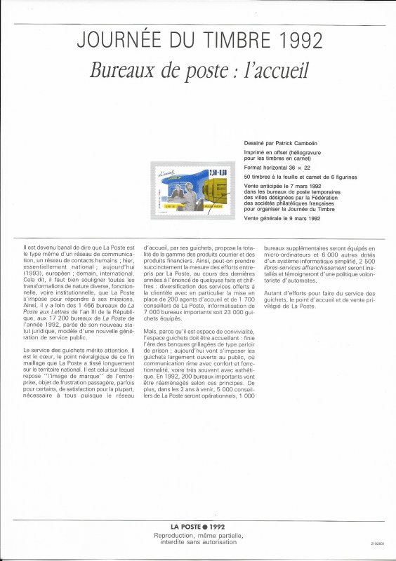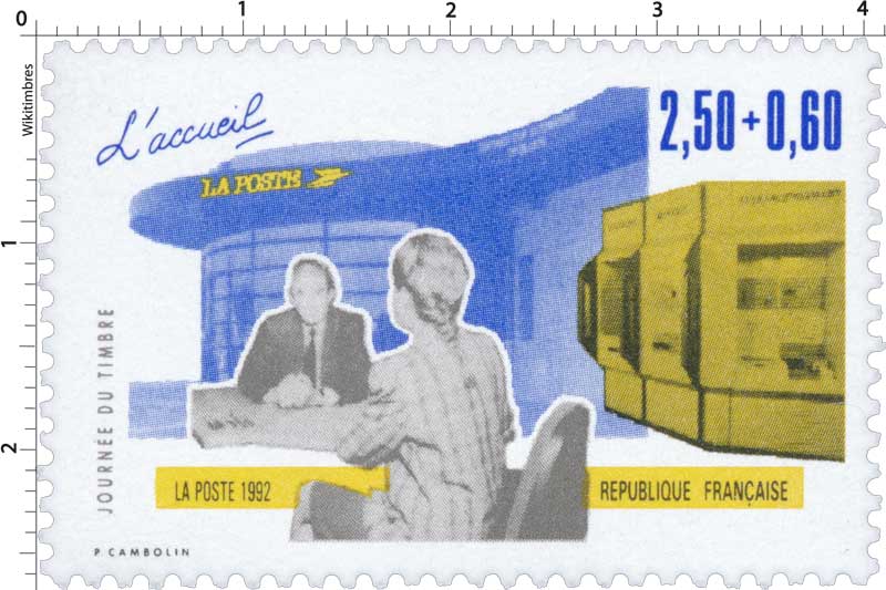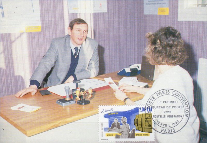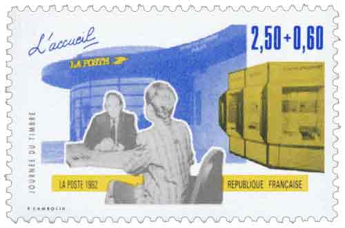 | Description | Journée du Timbre 1992. Les Métiers de la Poste, L'accueil |