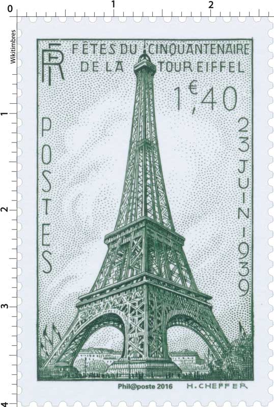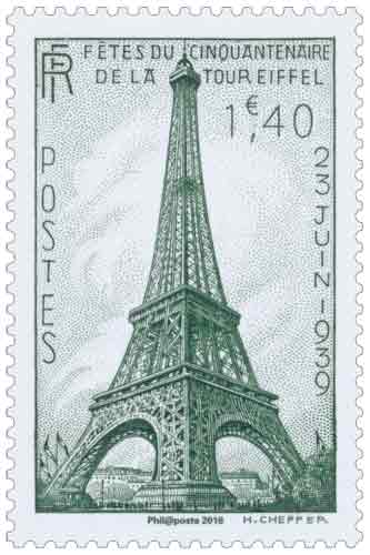 | Description | Réédition du timbre : "FÊTE DU CINQUANTENAIRE DE LA TOUR EIFFEL" |