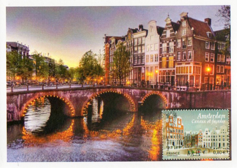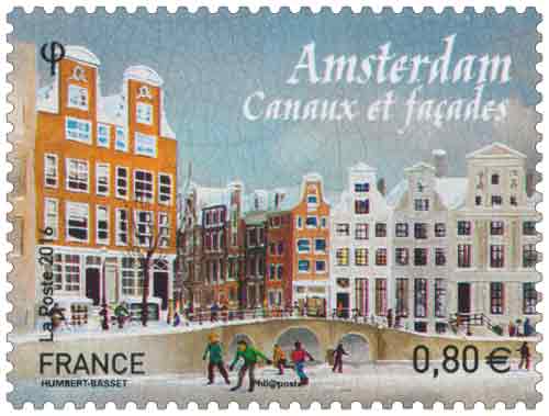 | Commentaire | Les timbres représentent 4 lieux parmi les plus emblématiques de la ville : les canaux bordés de façades, le Béguinage, le Rijksmuseum et la Westerkerk