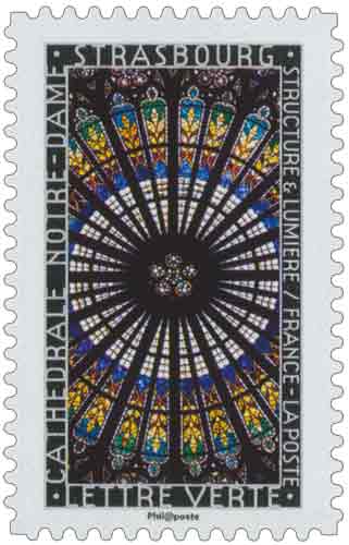 Cathédrale Notre-Dame de Strasbourg (67-Bas-Rhin © Fred de Noyelle / GODONG) - représentative de l'architecture gothique, édifiée de 1176 à 1439). Avec ses 142,11 m, elle été l'édifice le plus haut du monde de 1647 à 1874. Son frontispice est richement orné. Les tympans de ses trois portails, surmontés d'un double gable, sont consacrés à la vie du Christ. Au-dessus, la rosace, oeuvre d'Erwin von Steinbach (1244-1318, architecte et sculpteur alsacien) en constitue le point central, Ø 14 m, elle compte 16 pétales (au lieu de 12). La particularité de cette rosace, unique en son genre, est d'être composée d'épis de blé, et non de saints, comme c'est la coutume. Ils sont le symbole de la puissance commerciale de la ville. Particularité en relation avec les plumes d'écriture : vers la fin du XIXe siècle, un papetier de Strasbourg nommé I. Rikier se fit produire une plume avec comme symbole la façade de la cathédrale. Cette plume aurait été fabriquée par la maison Heintze & Blanckertz de Berlin ou Soennecken de Bonn - plume "Strasburger Münster-Feder".