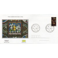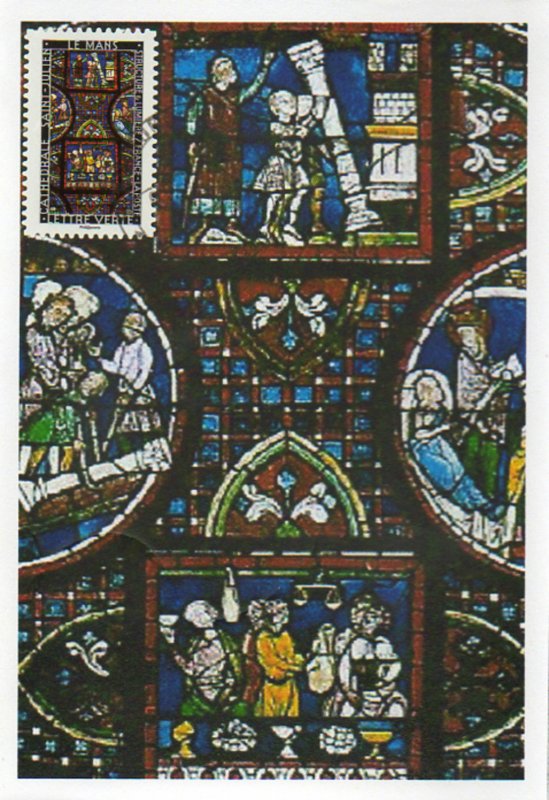 | Commentaire | En savoir plus sur Wikipédia : Cathédrale Saint-Julien du Mans Cathédrale Saint-Julien - Le Mans (72-Sarthe © GUIZIOU Franck / hemis.fr) – construite vers 1060, achevée vers 1430, mais non terminée. Elle est l’un des plus grands édifices de l’époque gothique-romane de France et un cas unique dans l’Ouest. Elle est un témoignage médiéval du style architectural du gothique angevin. Véritable musée de l'art du vitrail, la cathédrale abrite notamment le plus ancien vitrail sur site, le vitrail de l'Ascension. Dans la chapelle de la Vierge, le détail du bas : "les changeurs d'Allonnes", un atelier de changeur de monnaie, ce dernier évaluant le poids de l'or et vérifiant si la pièce n'a pas été rognée. Il refond les pièces étrangères pour les frapper au coin de la nouvelle monnaie. Le nom du donateur figure en bas de la baie "Le Franc, Scamiator de Alone" (Le Franc, changeur d'Allonnes), installé près du gué de Chahoué, principal lieu d'arrivée des voyageurs en provenance d'Angers et de Tours. |