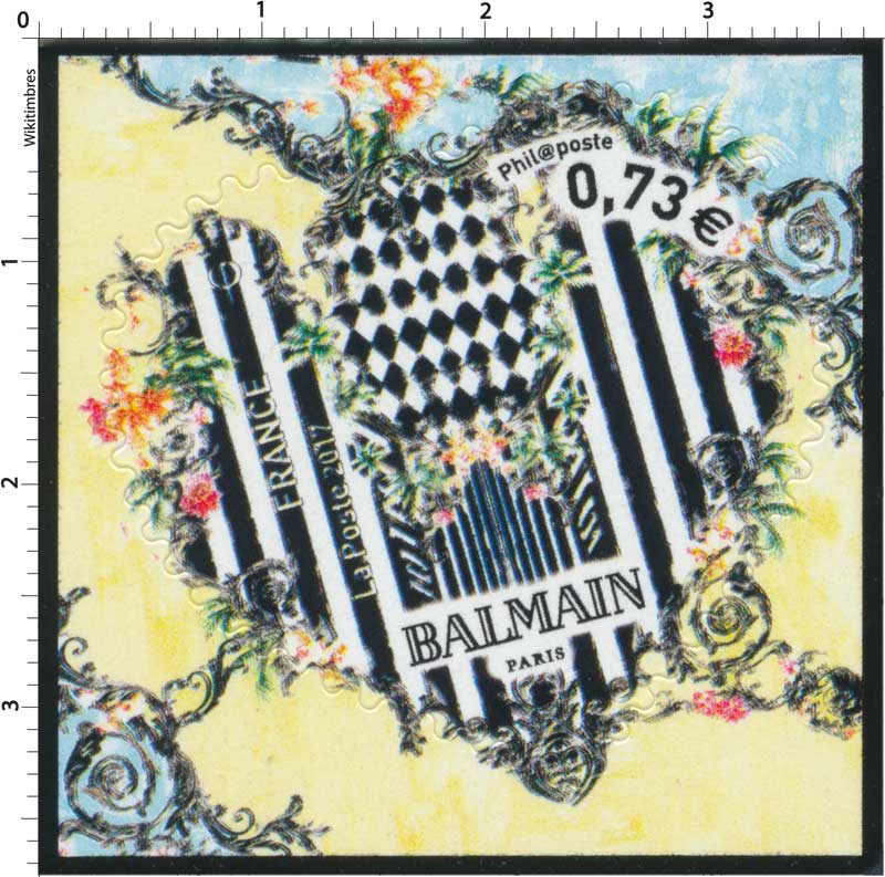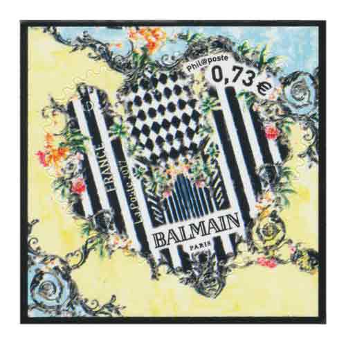 Timbre à date “Premier Jour” conçu par Balmain Mise en page Aurélie Baras