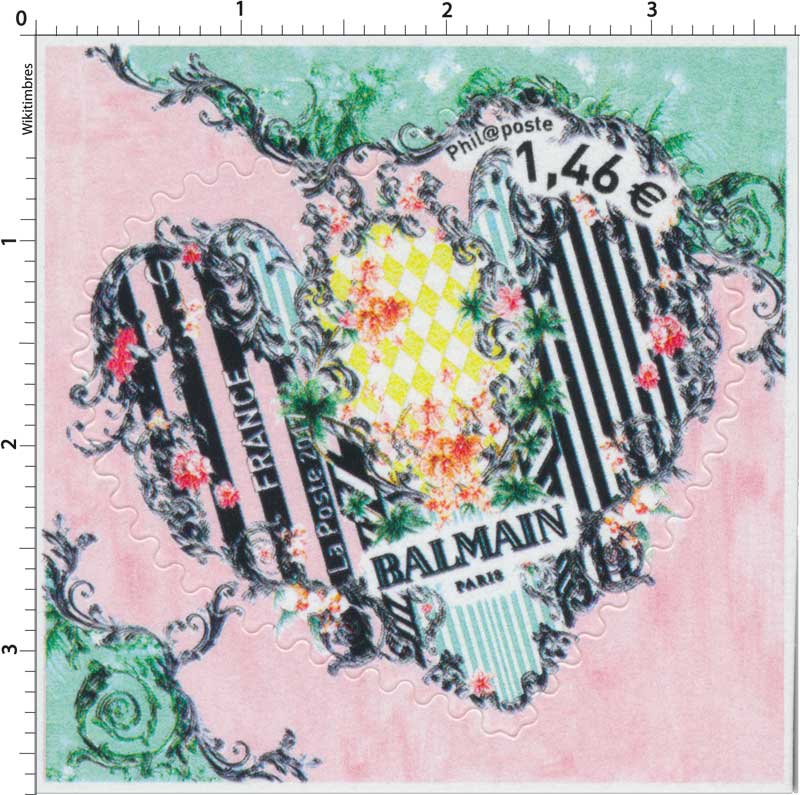 | Description | Timbre Coeur autoadhésif Balmain à 1.46 € - La Maison Balmain a été fondée en 1946 par Pierre Balmain (1914 - 1982), couturier français né à Saint-Jean-de-Maurienne |