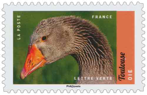 Toulouse – Oie © Michel Gunther / Biosphoto : ce sont des oies domestiques élevées pour l'industrie alimentaire. Elles sont gavées avec du maïs et produisent de la graisse et du foie gras (environ 1 kg) en plus de la viande. Description physique : il en existe deux types, celles avec bavette et celles sans bavette. Elles peuvent avoir un fanon entre les pattes. Leur plumage est brun foncé avec des marques grises et le ventre blanc. Le mâle (Jars) peut peser jusqu'à 10 à 12 kg, et s'occuper de 3 à 4 femelles (oie - 6 à 10 kg). L'oie pond environ 30-40 oeufs en saison. La tête est forte, mais élégante – l'oeil est c âtain foncé, avec un filet oculaire rou e – le bec est très épais à la base, long et de couleur orange – le cou est de longueur moyenne et très gros – les ailes sont larges, mais ne dépassent pas le bout de la queue – une large poitrine, avec ou sans fanon thoracique (panouille) – les pattes sont fortes, larges et orangées, les tarses sont gros et court ou long.