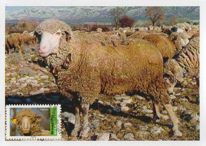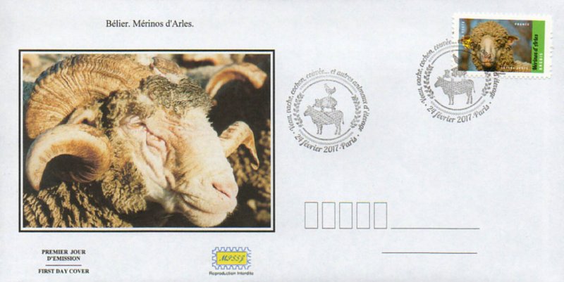 Mérinos d'Arles – Brebis © Michel Gunther / Biosphoto : c'est une race ovine élevée pour les agneaux et la laine, améliorée dans le Sud-Est de la France (Provence, Alpes, Côte d'Azur, Ardèche, Drôme, Gard, Isère et Savoie) au cours du XIXe siècle, par croisement de brebis locales avec des béliers mérinos espagnols. C'est un mouton de taille moyenne (les brebis pèsent de 40 à 60 kg), sélectionné à l'origine pour la qualité et la finesse de leur laine, et d'une grande rusticité. La race est bien adaptée à la transhumance. Entre 1955 et 1988 on créé un système de haras, rassemblant des béliers qui sont loués aux éleveurs de la région. De nos jours, c'est la production d'agneaux de boucherie qui rémunère surtout les éleveurs. Description physique : mouton de petite taille – brebis : 50 et 55 kg – béliers : 80 et 85 kg. Leur toison est particulièrement abondante, et recouvre l'intégralité du corps, y compris le front, les joues et les pattes. Elle est composée de mèches tassées, constituées d'une laine blanche aux brins ondulés et longs, très fine. Le front est court et assez large, avec un chanfrein légèrement busqué à la peau plissée chez le mâle. Ses oreilles horizontales sont de petite taille, et son cou est de longueur moyenne. La tête porte des cornes enroulées en spirales chez le mâle. Il y a également des béliers sans cornes, ils ont tendance à être de plus en plus nombreux.