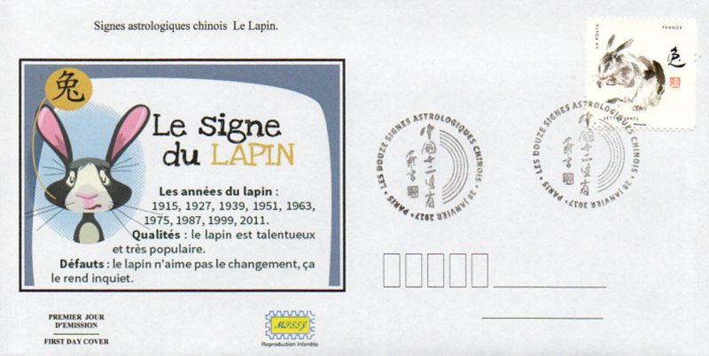 | Commentaire | Timbre à date “Premier Jour” Calligraphie de Li Zhongyao, mise en page Étienne Théry |