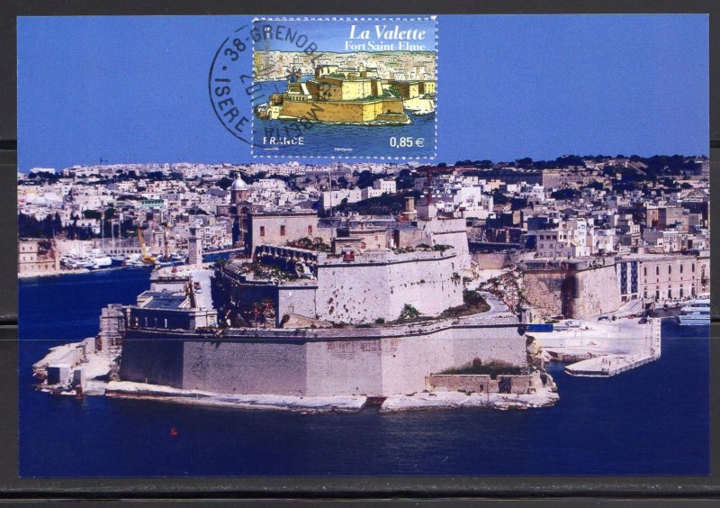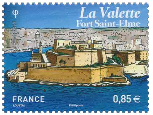 | Commentaire | Timbre erroné : la légende indique représente en fait le "Fort Saint-Ange", Fort Saint-Ange Le Fort Saint-Ange (Sant'Angelo, XIIIe siècle) dans la commune de Birgu, au Sud du Grand Harbour, vue depuis La Valette. Le "fort Saint-Elme" (Forti Sant’ Iermu) est agrandi et renforcé de 1552 à 1556, par l'Ordre de Saint-Jean, en cours d'installation sur les rives de Birgu. Il est détruit par les Ottomans, lors du Grand siège de 1565. Sa reconstruction et son agrandissement débutent dès 1566, pour assurer la défense des deux ports de Grand Harbour (au Sud) et Marsamxett Harbour (au Nord) de la péninsule, afin de protéger la construction de la nouvelle cité fortifié de La Valette. D'autres forts vont ceinturer les rives stratégiques des deux grandes baies, pour protéger le nouveau Siège de l'Ordre des Chevalier de Saint-Jean de Jérusalem. |