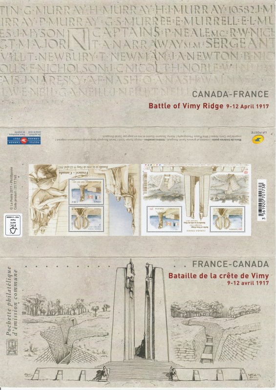| Description | Pochette "émission commune" : Bataille de la Crête de Vimy 1917-2017 |