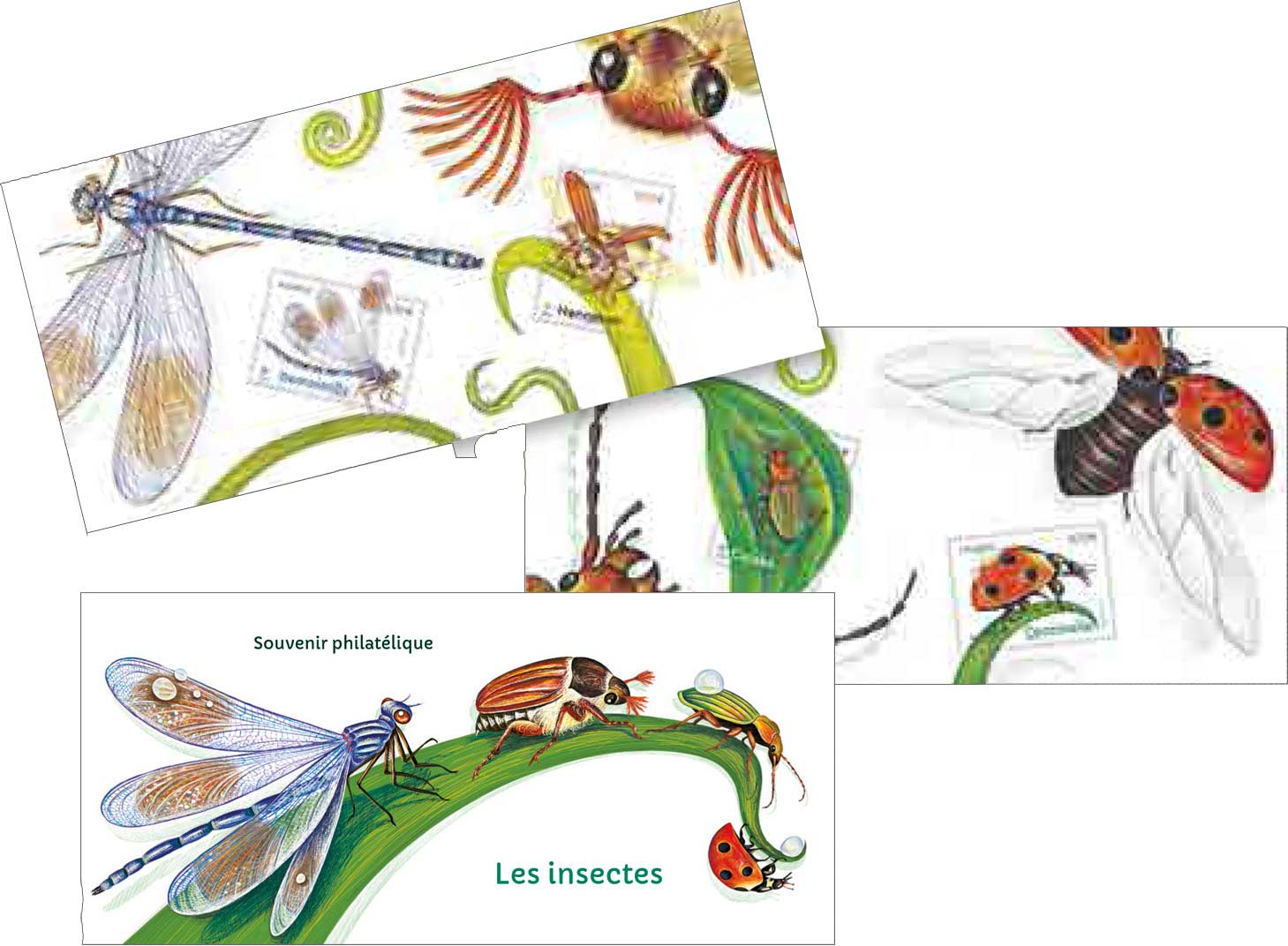 | Commentaire | En savoir plus sur Wikipédia : les insectes Deux feuillets.de 2 timbres, encartés dans un dépliant 2 volets Visuel de la couverture : les 4 insectes se suivent sur une longue plante verte Bloc-feuillet 1 : Demoiselle et Hanneton, Bloc-feuillet 2 : Carabe et Coccinelle, avec le grossissement d'un détail de chaque insecte et des plantes vertes évoquant le milieu naturel dans lequel ils évoluent. |
