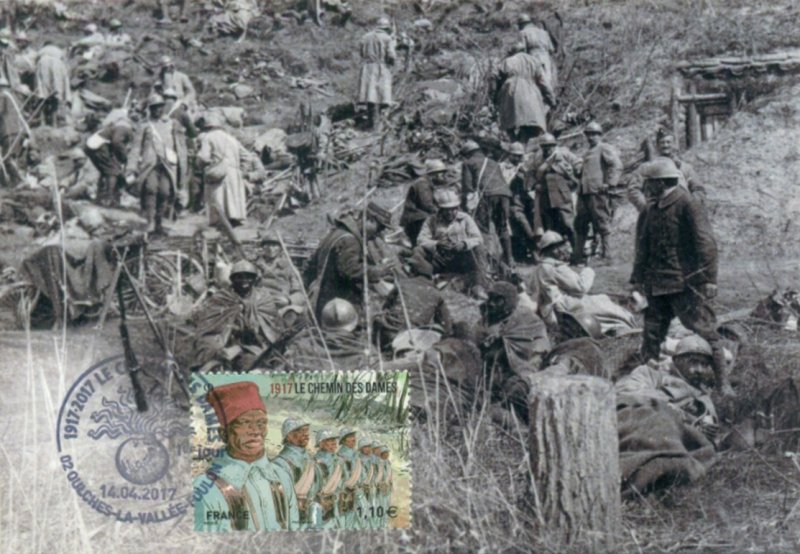 | Commentaire | En savoir plus sur Wikpédia : Chemin des Dames Les "Tirailleurs Sénégalais" au cœur de l’Offensive du "Chemin des Dames". Cette offensive voit l’engagement massif des tirailleurs sénégalais. Les pertes énormes depuis 1914 rendent indispensables le recours aux hommes levés dans les colonies. Le général Nivelle accepte pour mener l’offensive décisive, l’emploi de troupes indigènes. D’ailleurs, le général Charles Mangin (1866-1925), commandant la VIe armée, celle devant entrer dans Laon au soir du 16 avril, espère trouver au Chemin des Dames l’occasion de faire triompher définitivement ses idées sur la "Force noire ", du titre du livre éponyme qu’il a publié en 1910. Mangin place donc ses Sénégalais aux deux ailes de son armée et les fait attaquer à la fois autour de Vauxaillon-Laffaux et de Paissy-Hurtebise. Ils combattront jusqu’à l’offensive de la Malmaison, fin octobre. Le 16 avril, lors de l'assaut de l'offensive, les hommes sortant de la Caverne du Dragon prennent à revers les Sénégalais qui s'étaient lancés à la conquête de l'isthme d'Hurtebise. Les Sénégalais sont désorientés et cèdent à la panique : cela met un coup d'arrêt à leur avancée. L'existence de nombreuses "creutes" reliées à l'arrière par des tunnels est une des explications de l'échec brutal de l'offensive. |