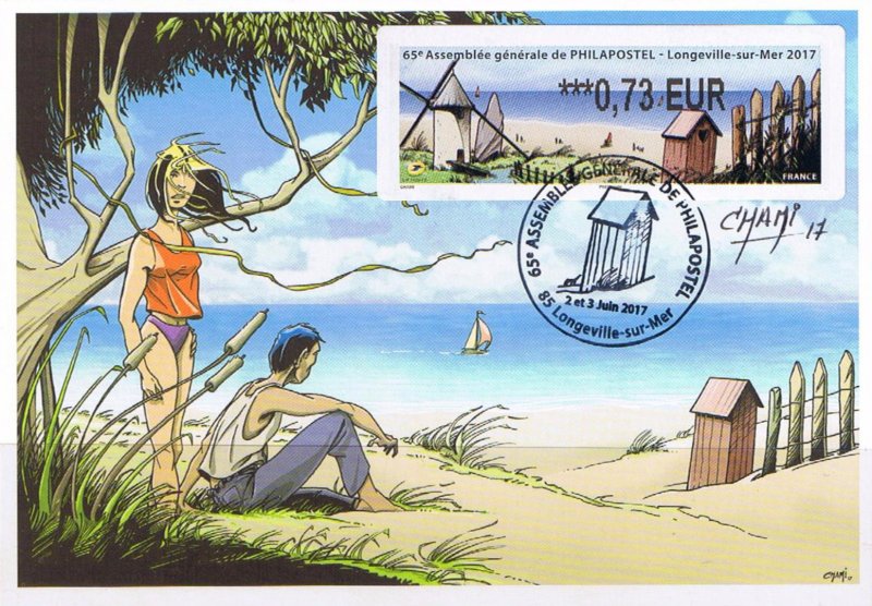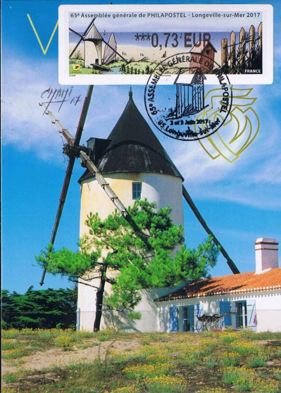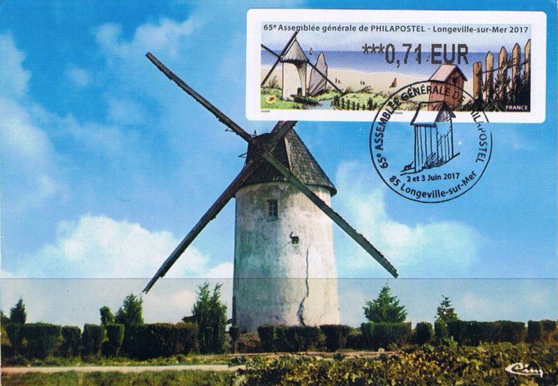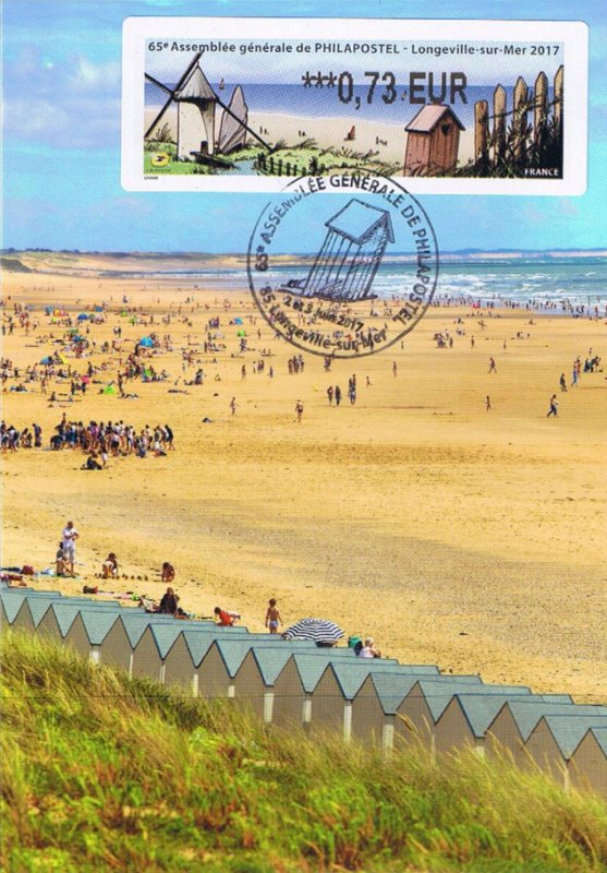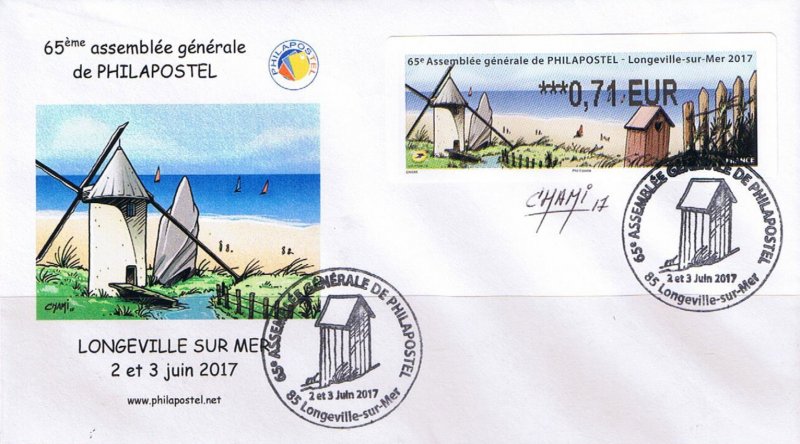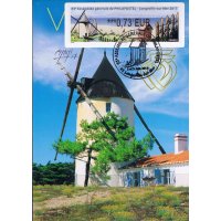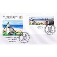 | Commentaire | En savoir plus sur Wikipédia : Longeville-sur-Mer Du 1er au 4 juin, au village-vacances "Azureva - Les Conches" à Longeville sur Mer (85-Vendée), les 27 associations régionales et départementales de Philapostel en France et en Outre-mer se retrouveront pour l’Assemblée Générale de PHILAPOSTEL. Plus de 150 congressistes sont attendus à cette rencontre annuelle, couplée à une exposition philatélique interrégionale de prestige. Longeville sur Mer est une commune située sur la Côte de Lumière dans le Sud de la Vendée, en limite Nord du Marais Poitevin. La commune donne son nom à une forêt domaniale du littoral composé de pins et de chênes verts. Le bourg ne se situe pas directement en bord de mer, mais il existe trois stations balnéaires sur le territoire de la commune, qui sont, du Nord au Sud, les hameaux du Bouil, du Petit-Rocher et des Conches. La commune doit son nom à une "longue ferme" bâtie sur la partie haute du territoire et autour de laquelle s'est créé le village. C'est en 1058 que l'on retrouve le nom de Longa Villa, puis en 1305, Longueville, devenue par la suite Longeville. |