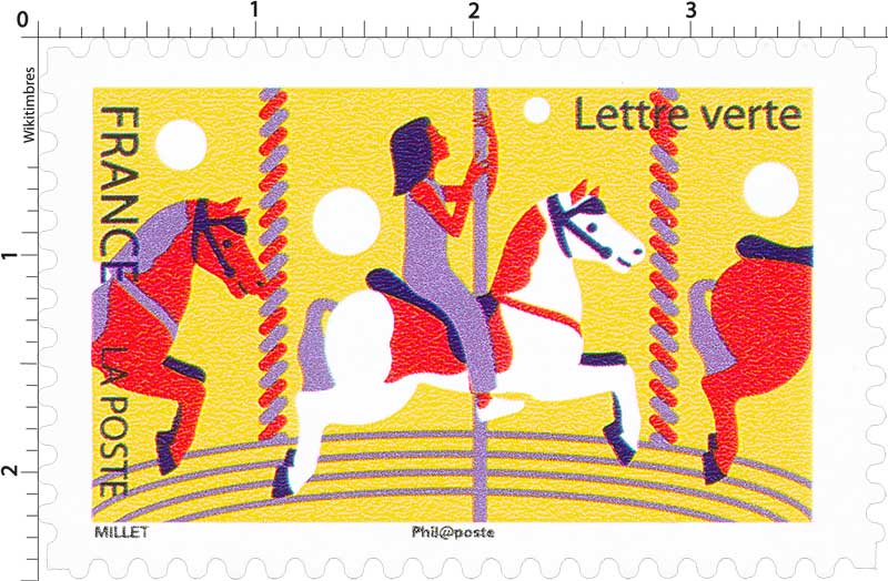 | Description | Provenant du carnet de timbres sur le thème de la fête foraine : Le manège |